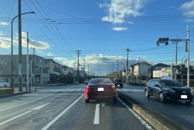 ②を直進すると右手に西松屋がみえてきます。さらに進み、ひとつ目の交差点を左折します。(カメラのキタムラ手前の交差点です。)