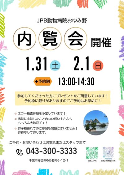 今後2026年から、JPB動物病院おゆみ野ではしつけ教室、犬の幼稚園、歯科セミナー、シニア向けセミナー、パピークラス、老犬のケアサービス等々実施して行きます!